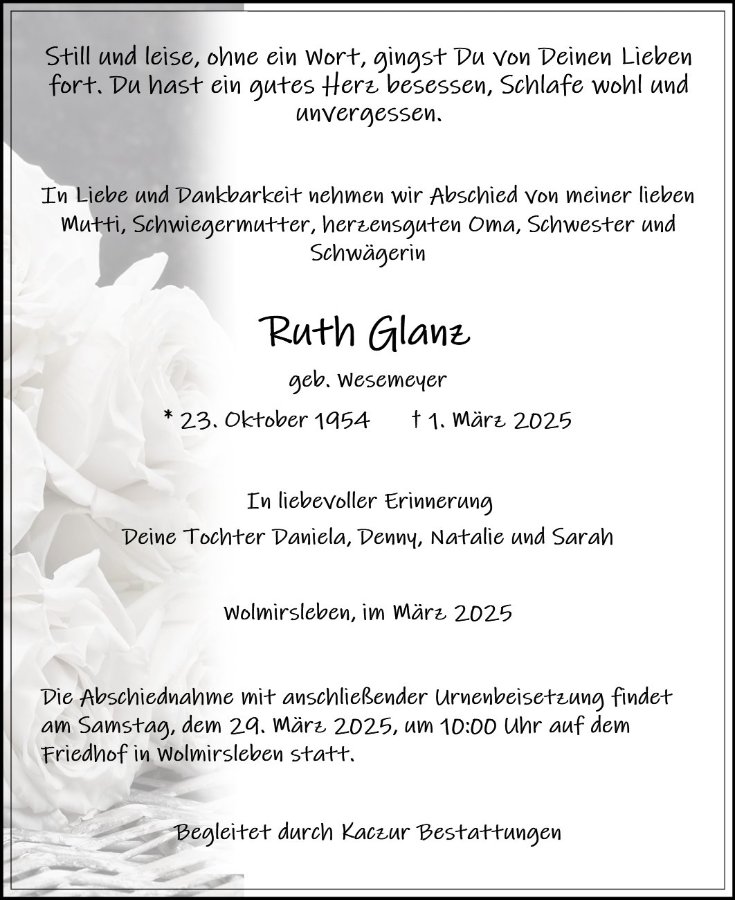 Ruth Edith Else Glanzgestorben am 1. März 2025